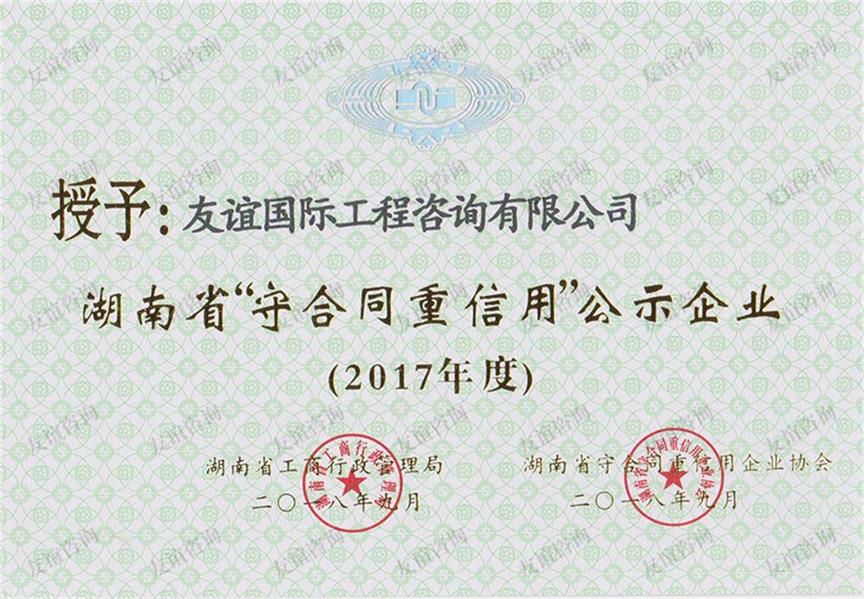 • 2017年度湖南省“守合同重信用”企業