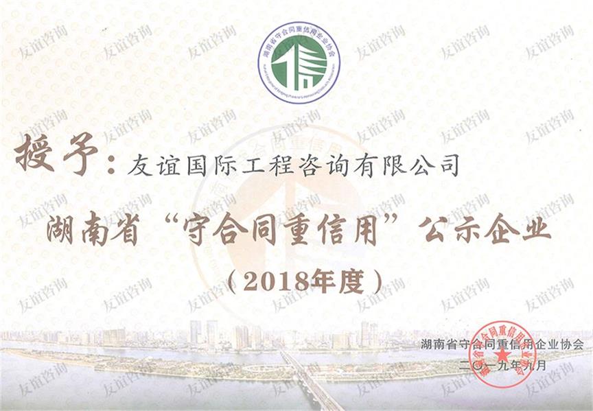 • 2018年度湖南省“守合同重信用”企業